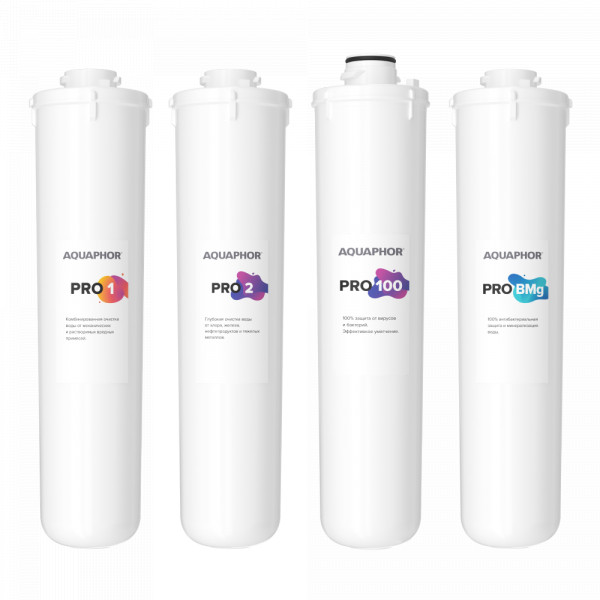 Модули предварительной очистки PRO 1 и PRO 2, изготовленные по технологии карбонблок с микроволокном, эффективно удаляют из воды не только ржавчину и крупные нерастворимые примеси, но также хлор, нефтепродукты и тяжелые металлы. Модуль PRO 100 с обратноосмотической мембраной полностью устраняет соли жесткости (причину накипи) и любые загрязнители, встречающиеся в водопроводной воде, в том числе бактерии и вирусы.